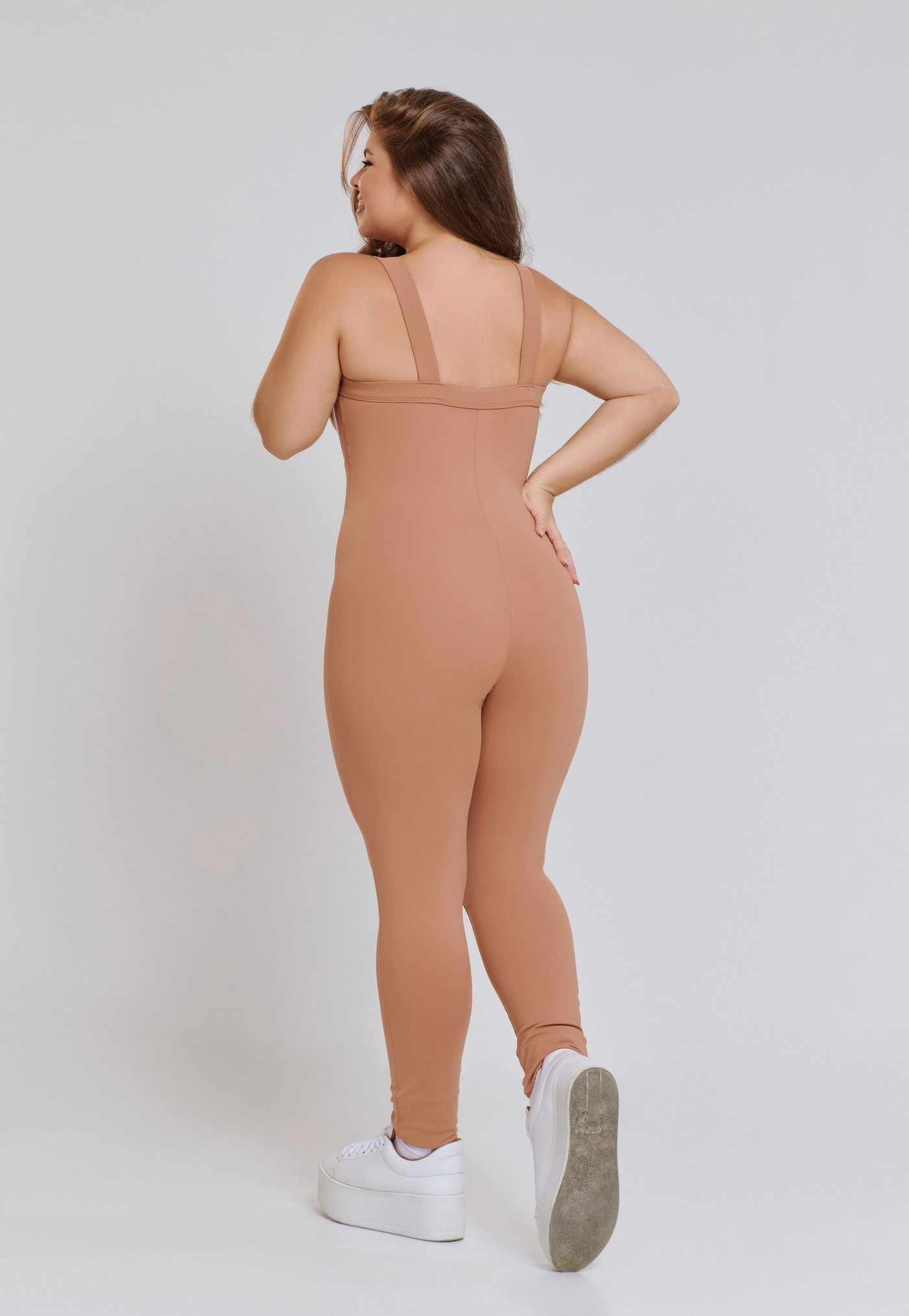 O Macacão Minimal foi desenvolvido com tecnologia inspirada na lingerie, proporcionando uma sensação de busto envelopado e sustentado com firmeza, sem abrir mão do conforto. O design chapado no busto com ponto de luz central segue uma das maiores referências da moda atual, trazendo elegância e modernidade à peça.